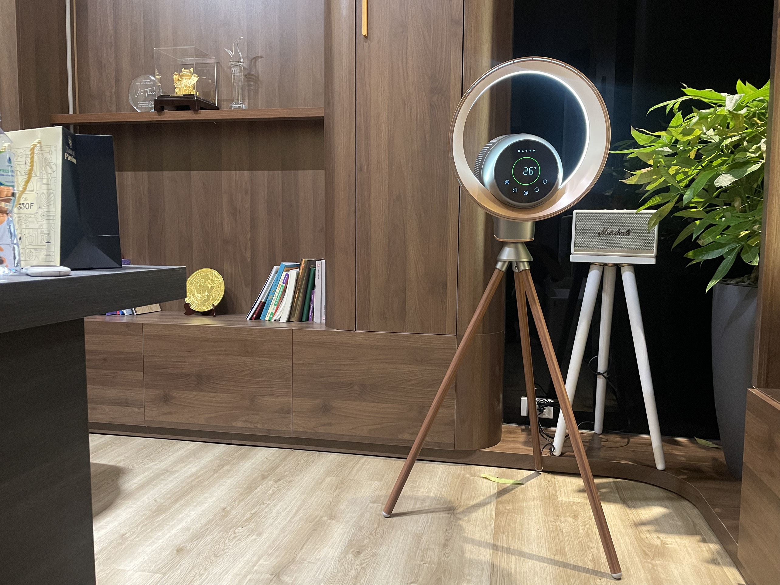 - ULTTY BB sử dụng đèn khí quyển học vòng tròn bo xung quanh viền quạt. Giúp thẩm Mỹ sang trọng, đồng thời kết hợp làm đèn ngủ, đen trang trí, sử dụng hoàn toàn độc lập với các chức năng khác