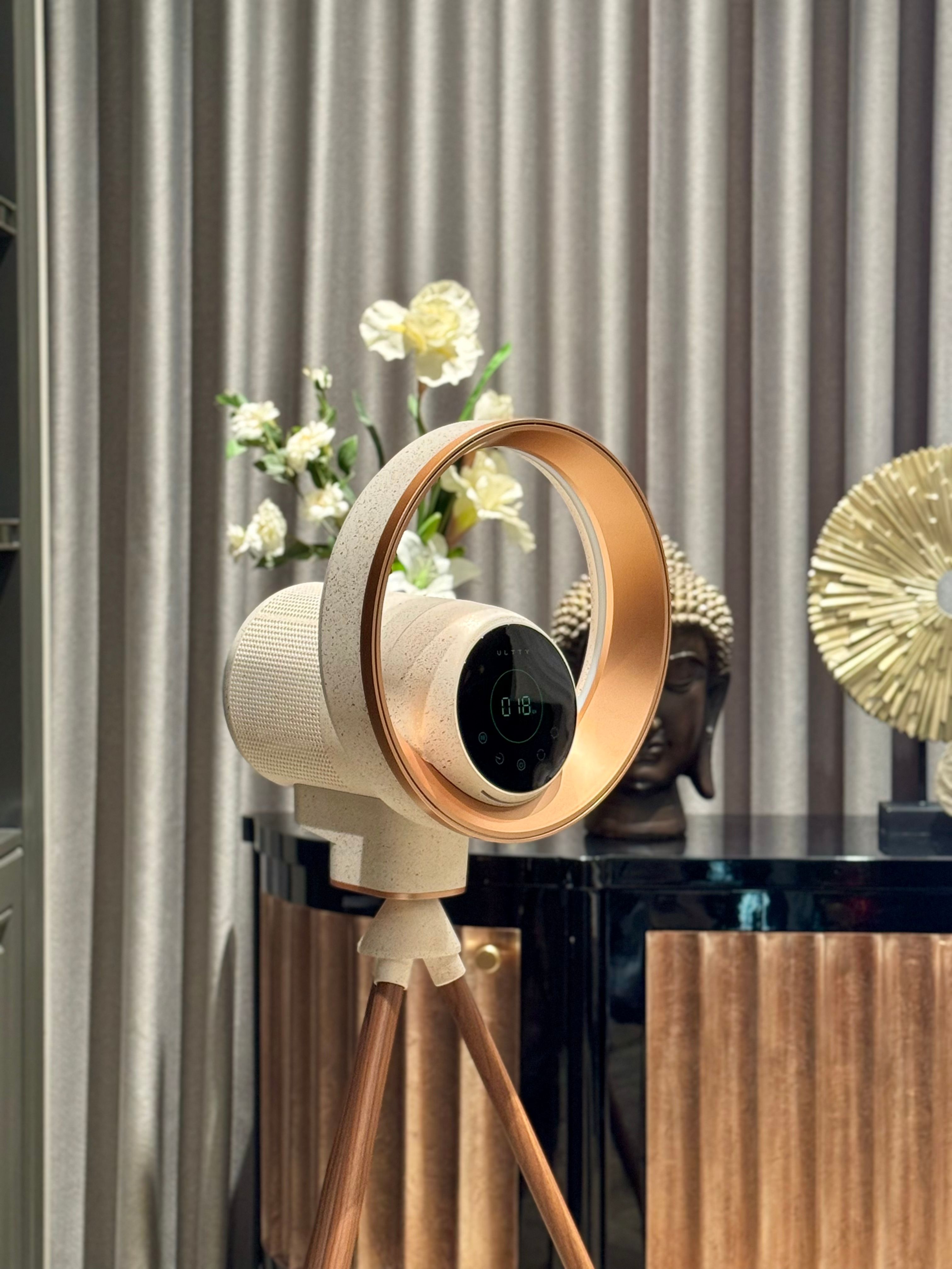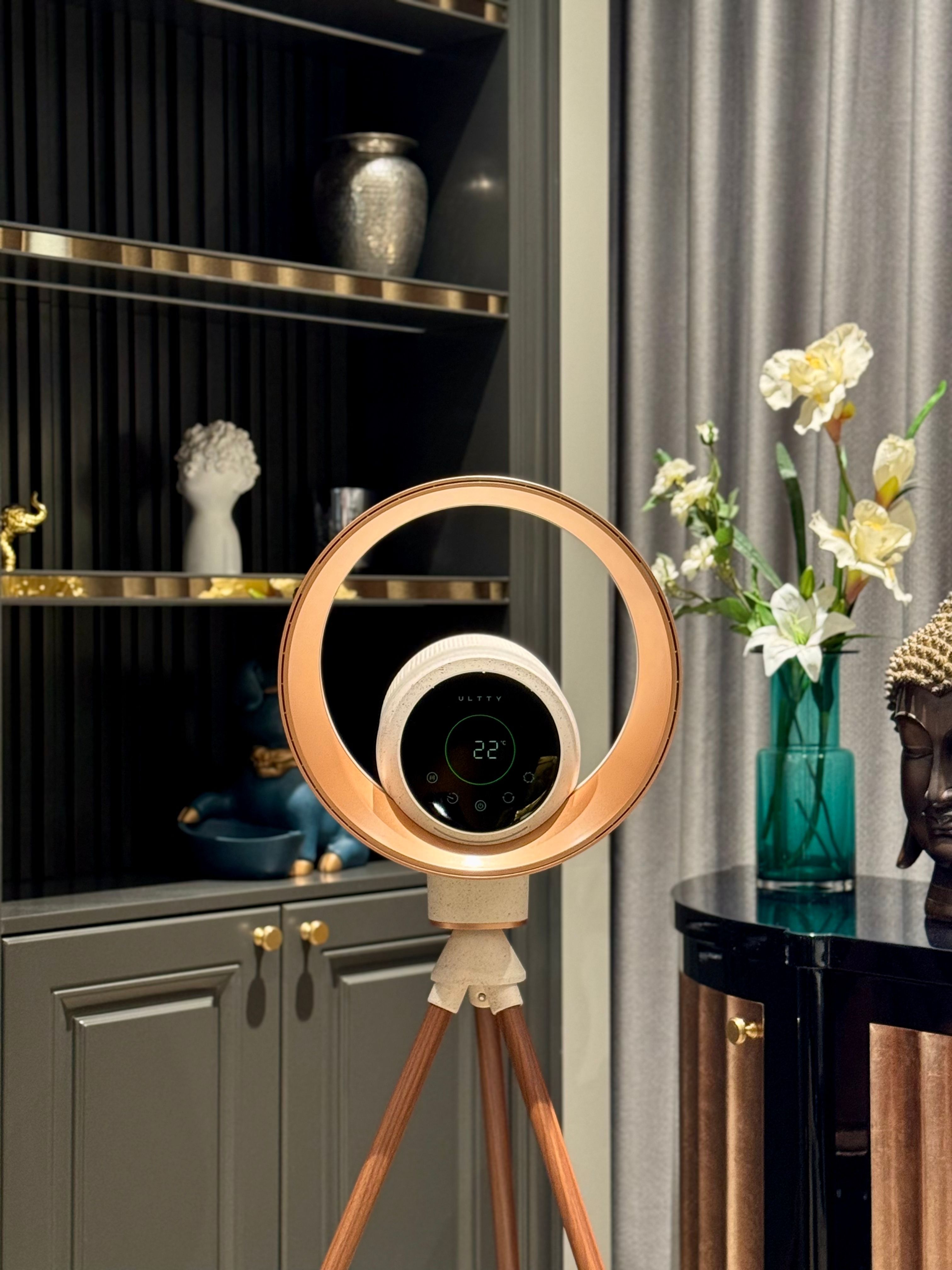 Màu sắc trendy đầy cuốn hút và phá cách, quạt lọc khử khuẩn ULTTY BB Róse mang đến một làn gió mới cho không gian sống hiện đại. Sự kết hợp hoàn hảo giữa tone trắng kem hồng thời thượng cùng kỹ thuật vẩy mực thủ công tinh tế, điểm xuyết nhẹ nhàng bằng sắc vàng đồng ánh kim sang trọng, tạo nên một diện mạo vừa thanh lịch, vừa cá tính.