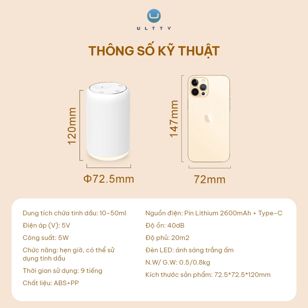 Máy Khuếch Tán Tinh Dầu Ultty Aroma - Nhỏ Gọn, Sang Trọng, Tiện Lợi