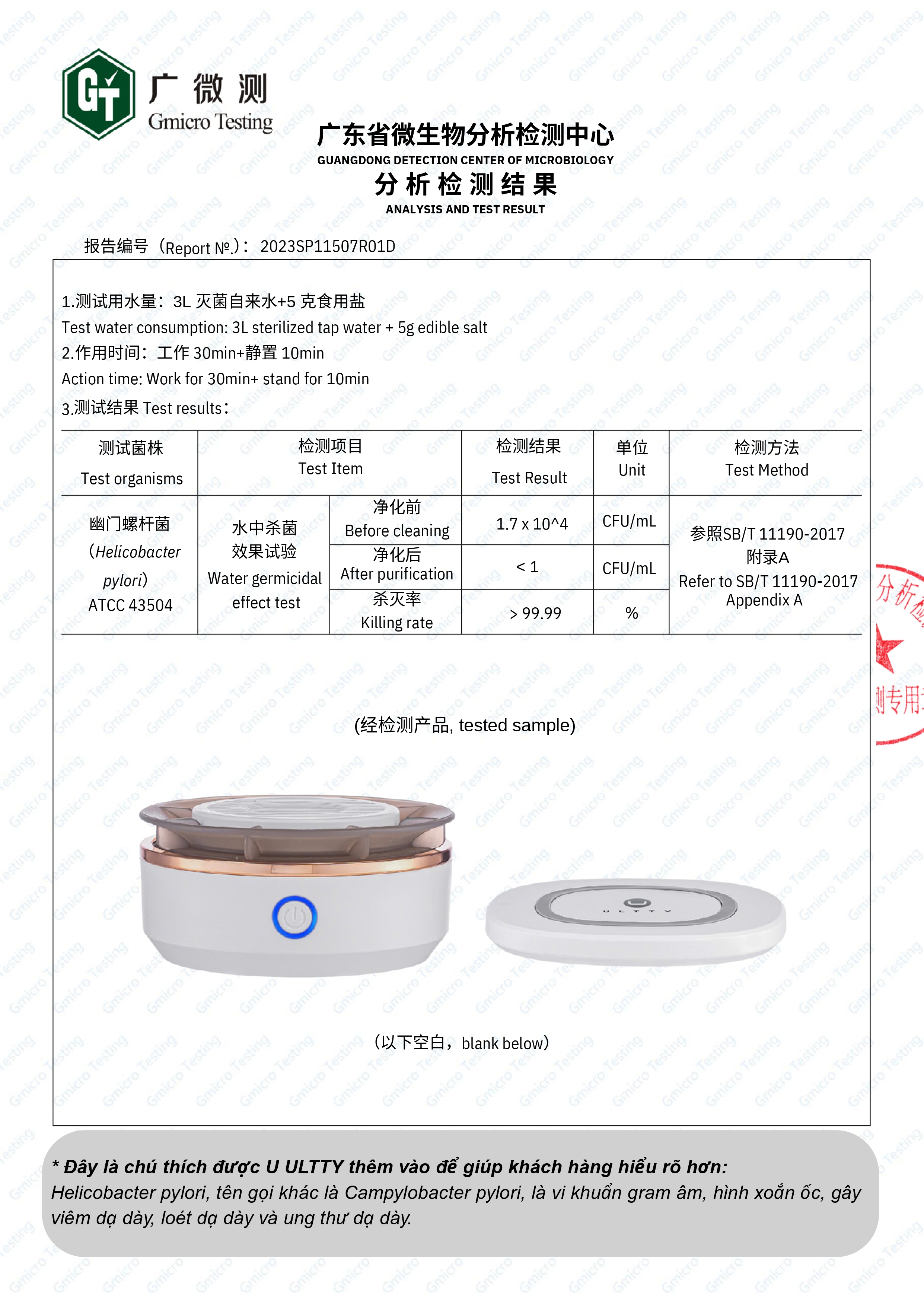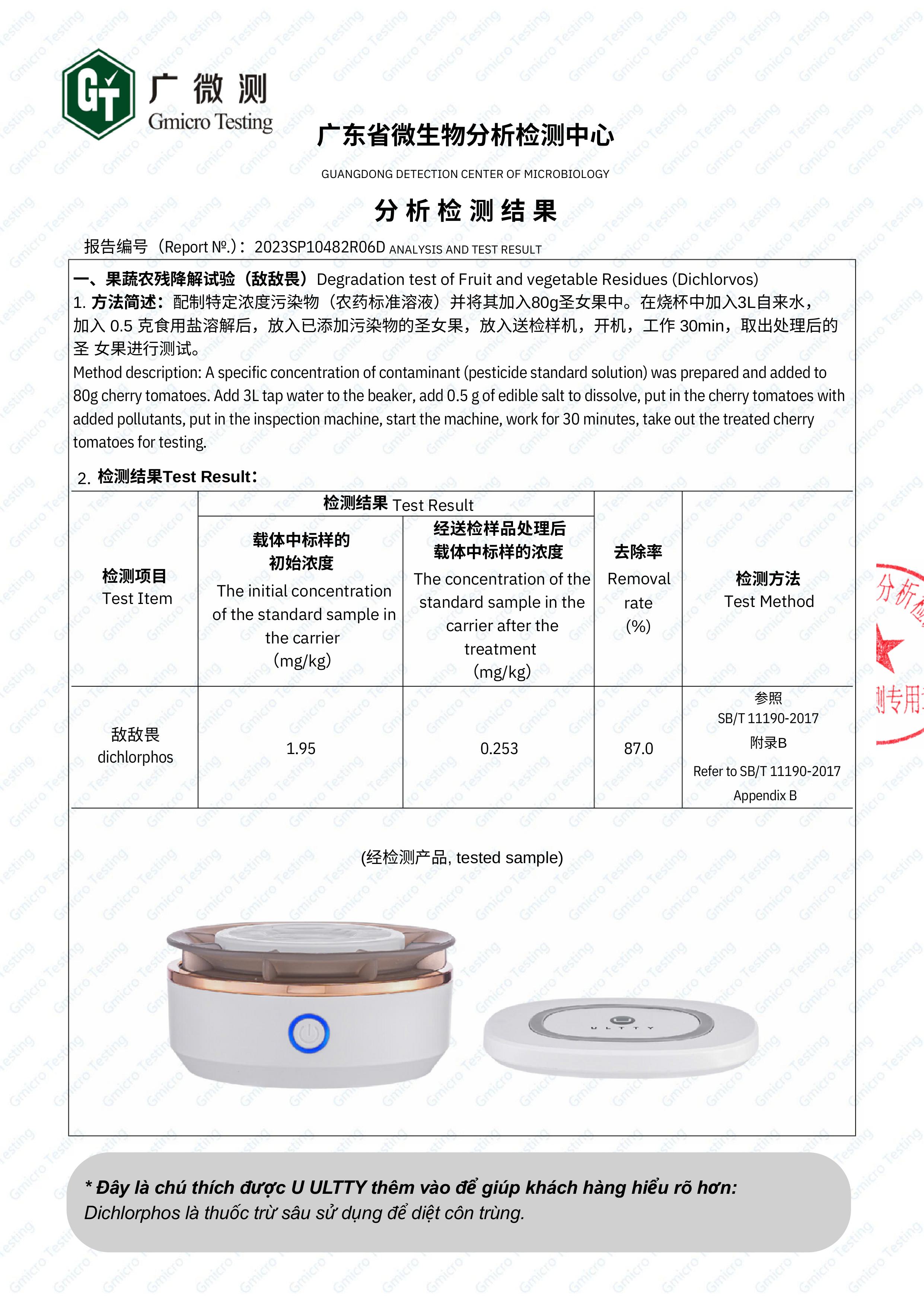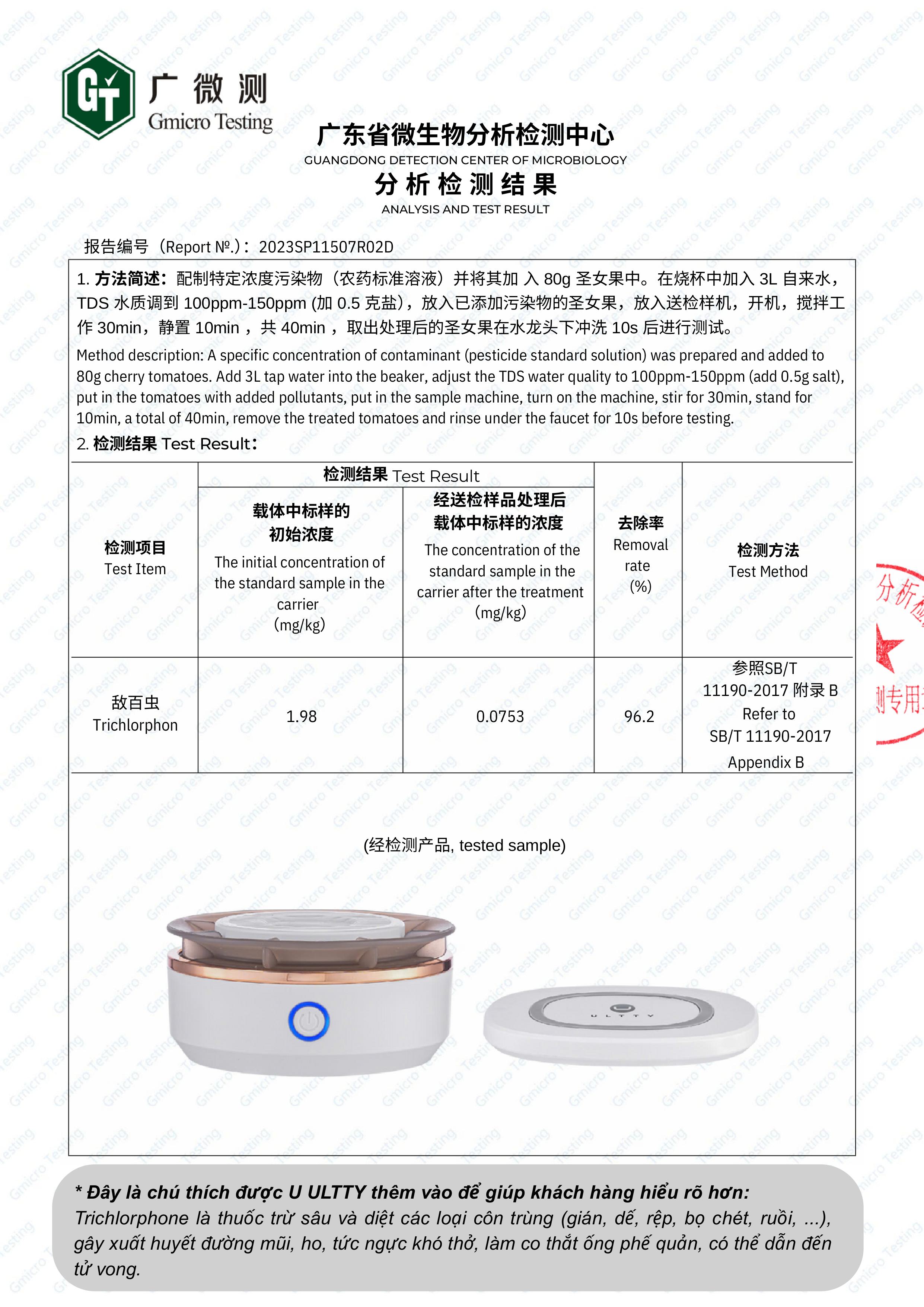 ULTTY WFX vượt qua kiểm định khắt khe, chứng minh khả năng làm sạch thực phẩm vượt trội – hiệu quả trong việc loại bỏ vi khuẩn, hóa chất và độc tố tồn dư trên rau củ, thịt cá.