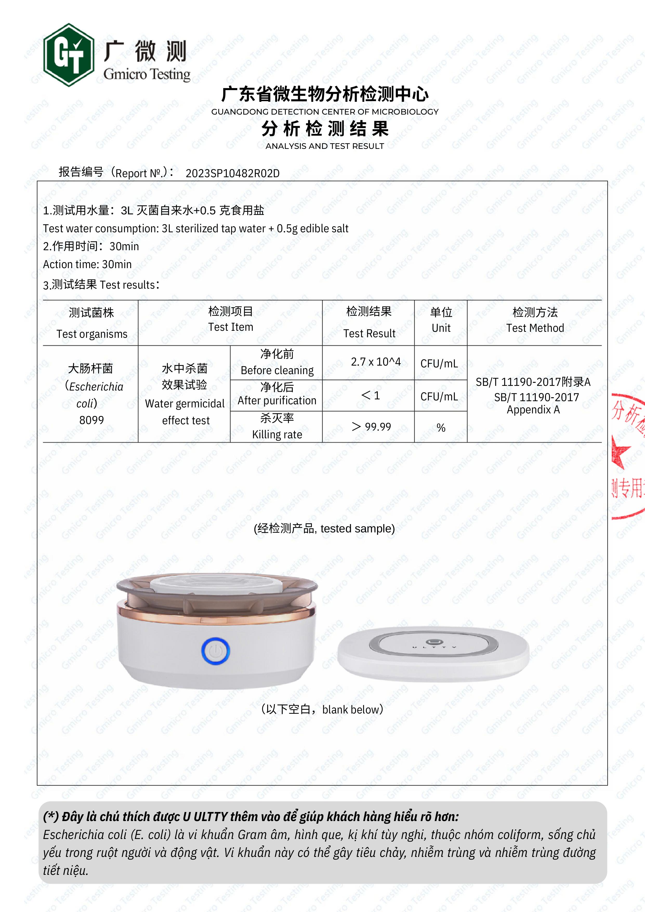 - E.coli: Diệt khuẩn 99,99% – bảo vệ khỏi tiêu chảy, ngộ độc