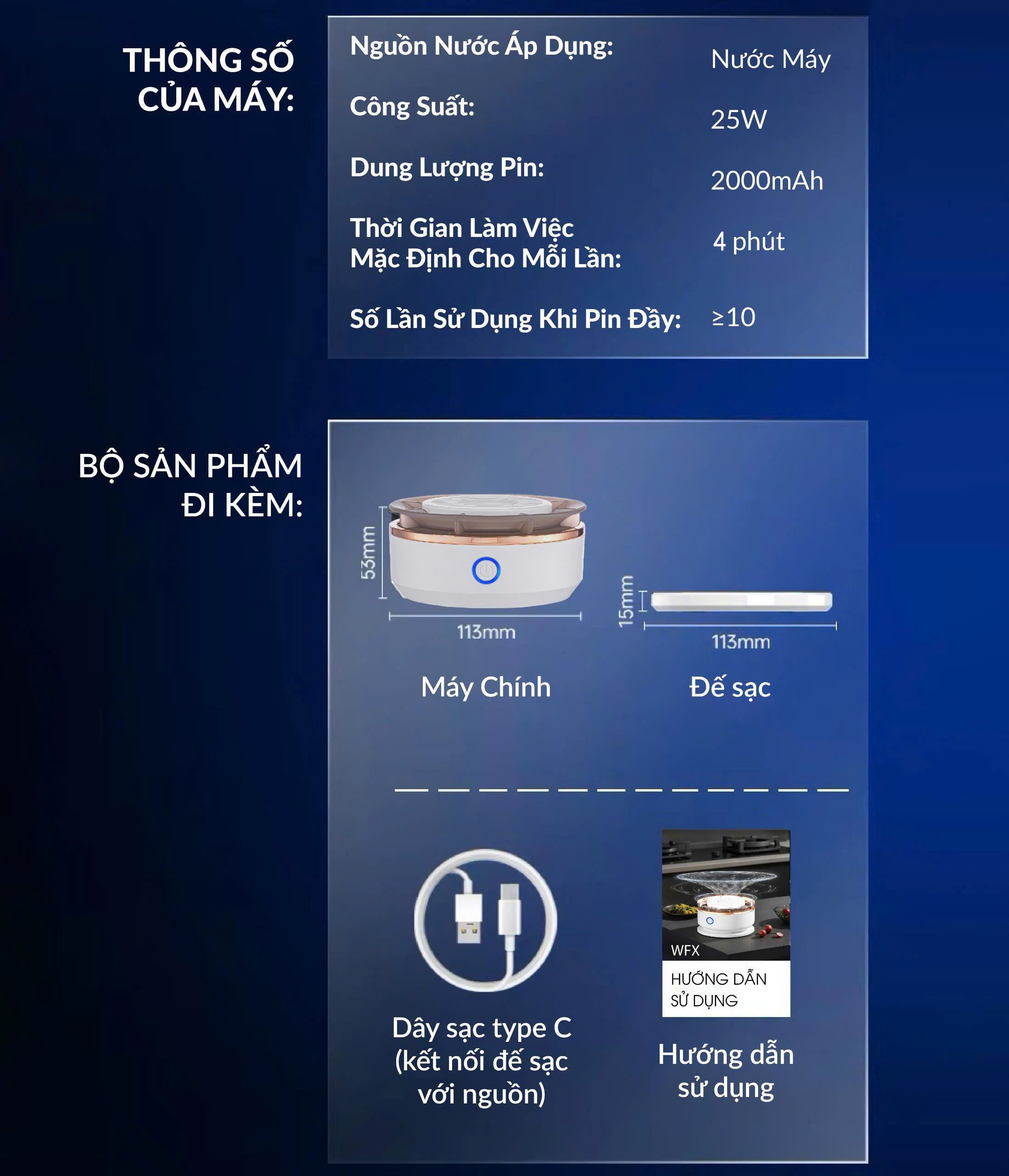 - Hiệu quả vượt trội chỉ sau 4 phút với công suất mạnh mẽ 25W: Rút ngắn thời gian so với ngâm muối, nước vo gạo, giấm…