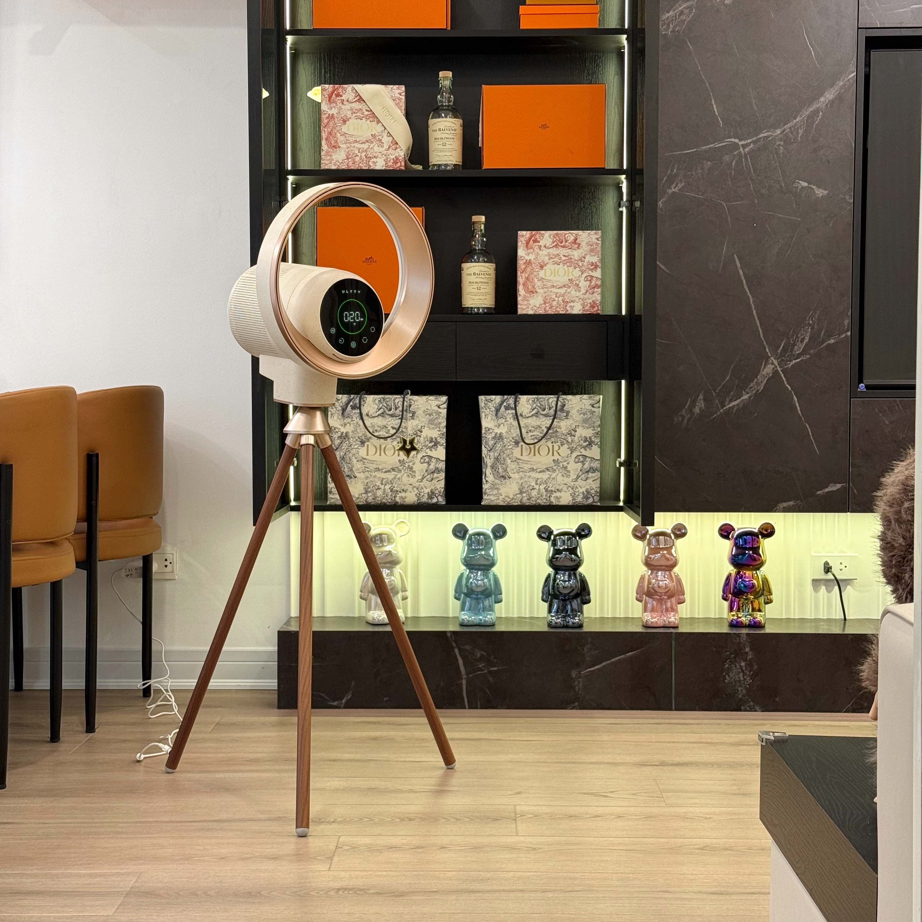 - ULTTY BB sử dụng đèn khí quyển học vòng tròn bo xung quanh viền quạt. Giúp thẩm Mỹ sang trọng, đồng thời kết hợp làm đèn ngủ, đen trang trí, sử dụng hoàn toàn độc lập với các chức năng khác