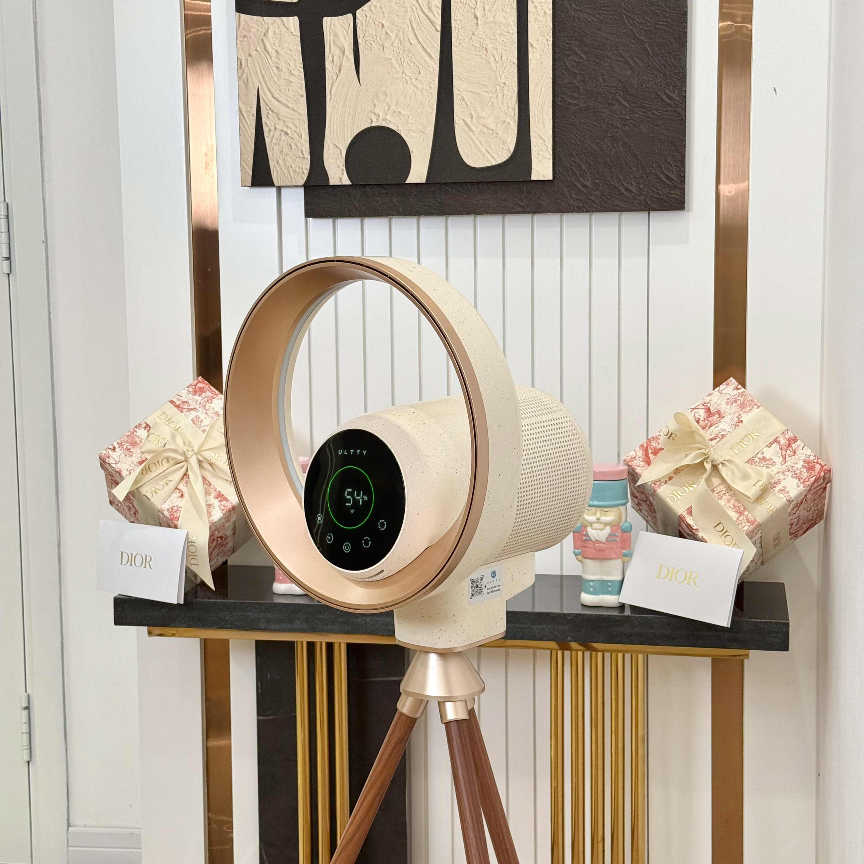 Màu sắc trendy đầy cuốn hút và phá cách, quạt lọc khử khuẩn ULTTY BB Róse mang đến một làn gió mới cho không gian sống hiện đại. Sự kết hợp hoàn hảo giữa tone trắng kem hồng thời thượng cùng kỹ thuật vẩy mực thủ công tinh tế, điểm xuyết nhẹ nhàng bằng sắc vàng đồng ánh kim sang trọng, tạo nên một diện mạo vừa thanh lịch, vừa cá tính.
