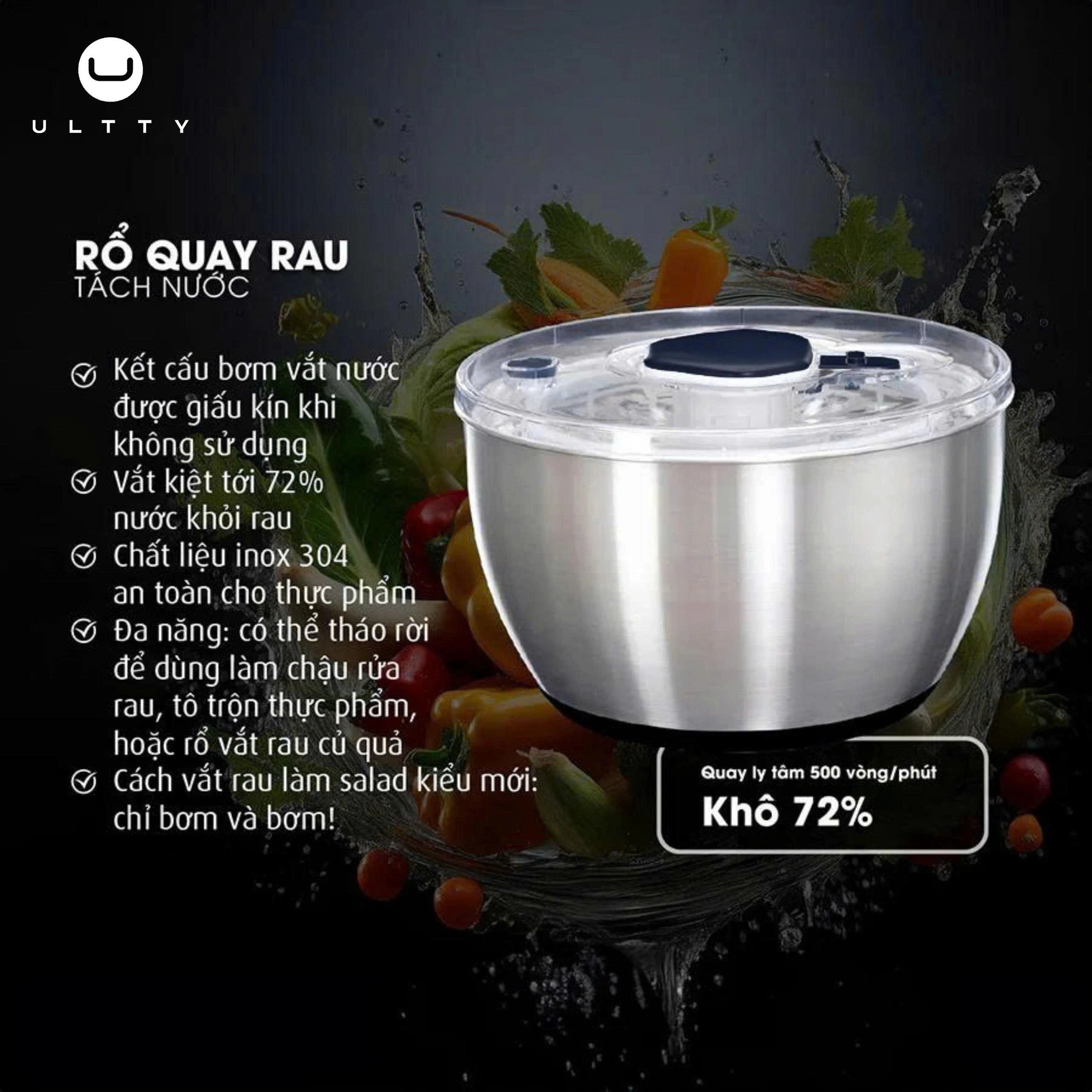 U ULTTY PF360 là phiên bản rổ quay rau cao cấp được thiết kế dành riêng cho những người yêu bếp hiện đại: